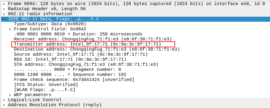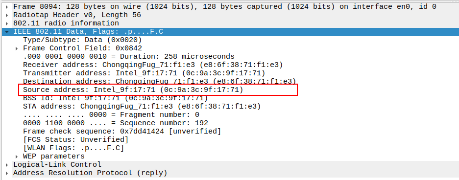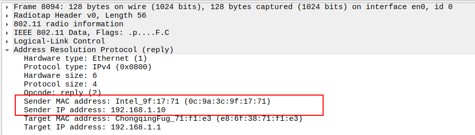 AP MAC (BSSID) — the sender of the ARP Reply.