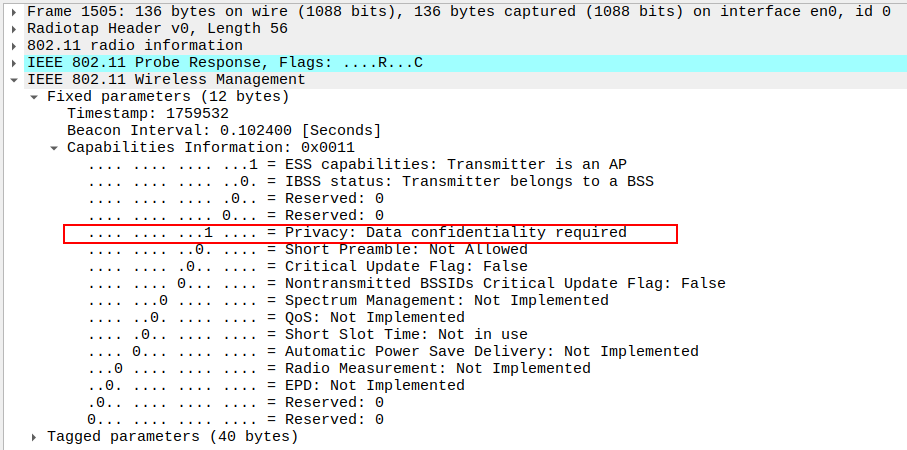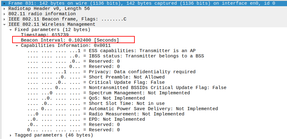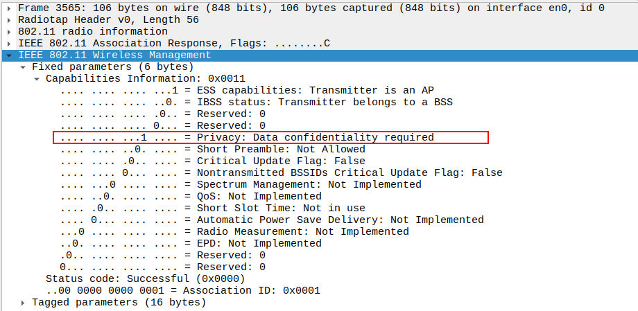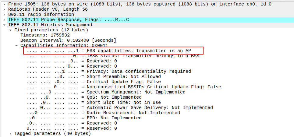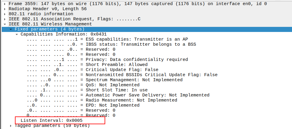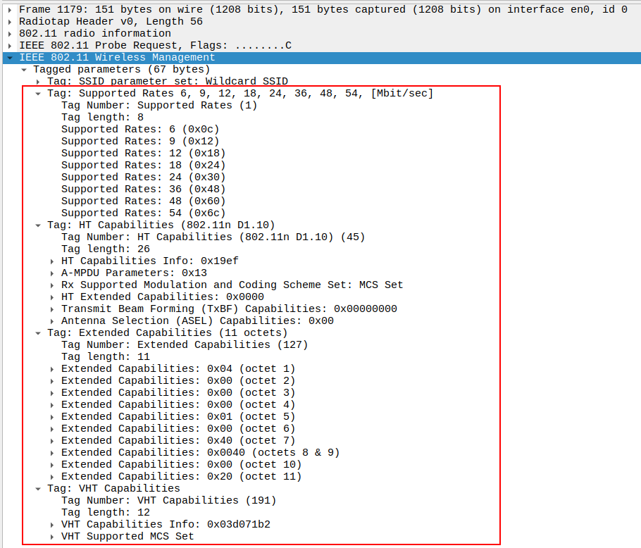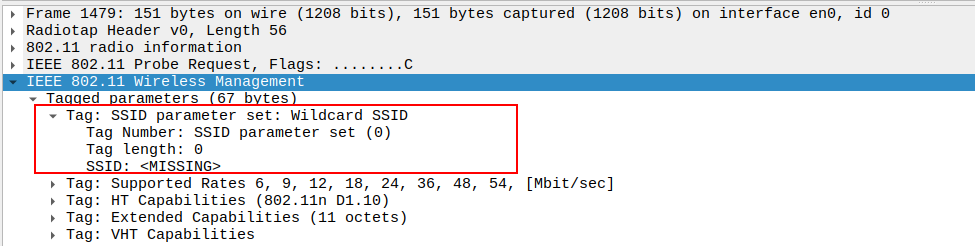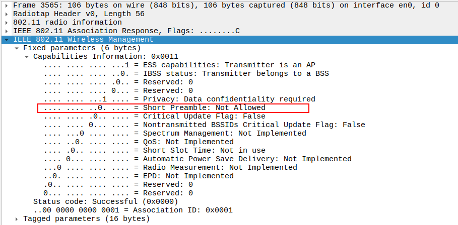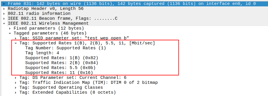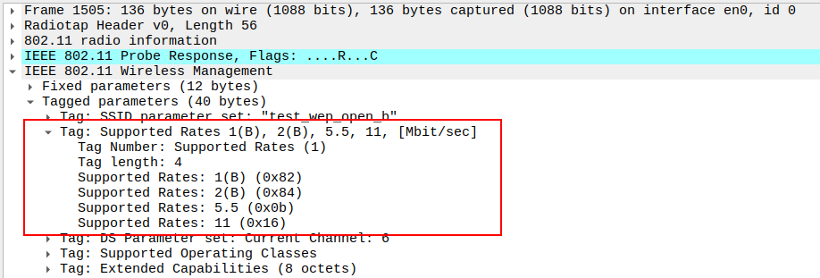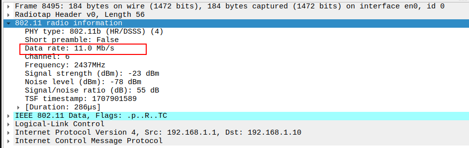 Data Rate indicates the PHY rate used by the AP (e.g., 11 Mbps).