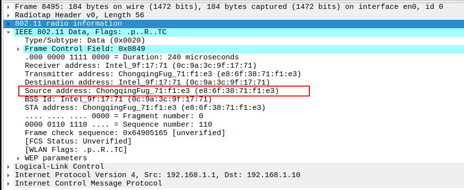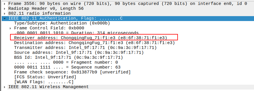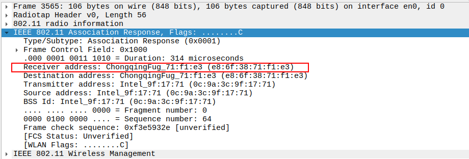 STA MAC address (e.g., e8:6f:38:71:f1:e3).