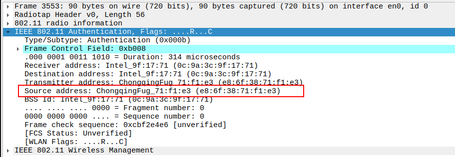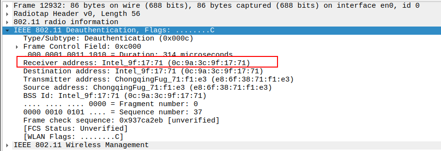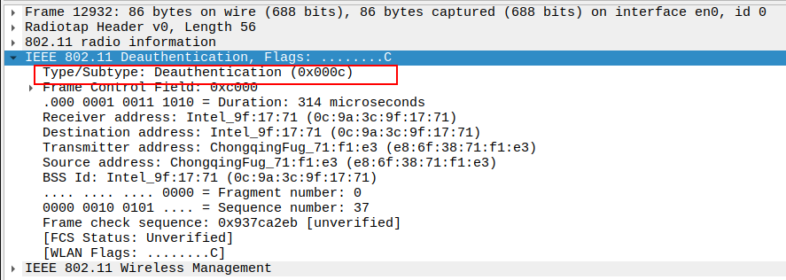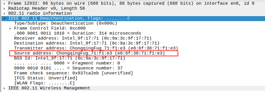 MAC address of the device sending the deauthentication frame (AP or STA).