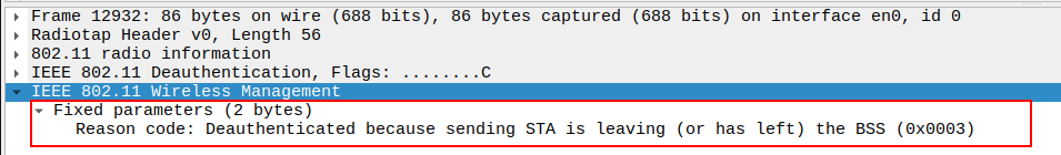 Deauthentication is a management frame sent by either the AP or STA to terminate an existing connection.