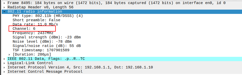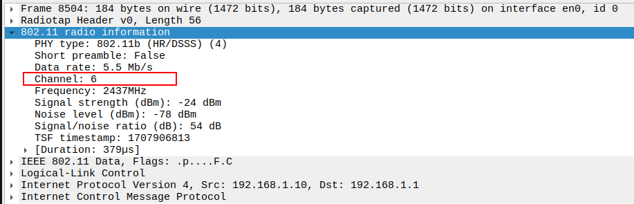 Channel used for transmission (e.g., Channel 6 / 2437 MHz).