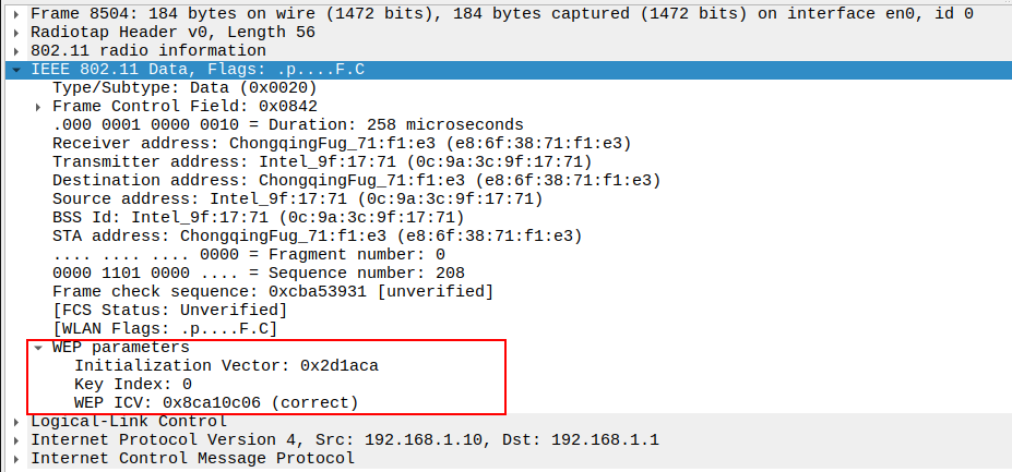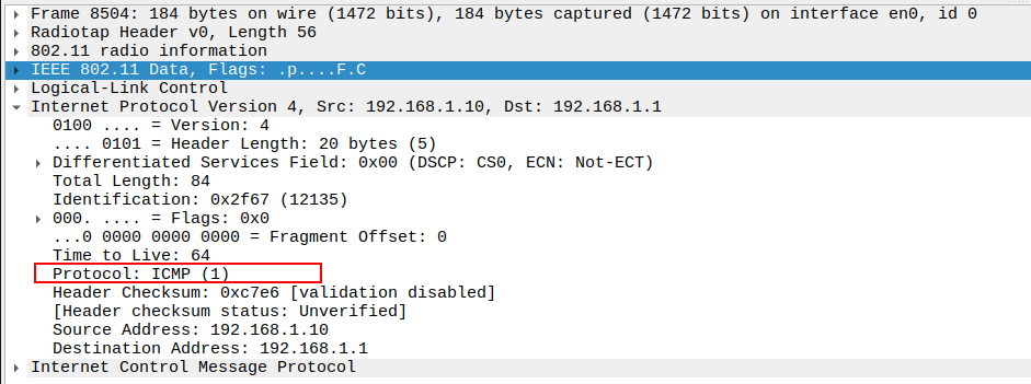 Encrypted CRC32 checksum ensures the integrity of the ICMP Request.