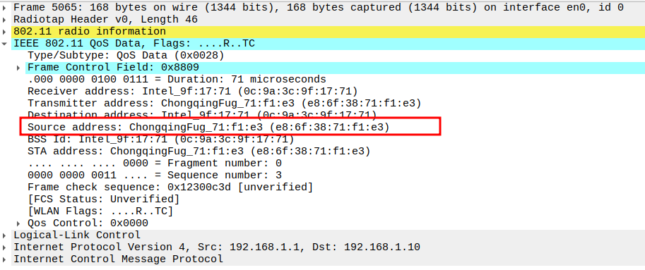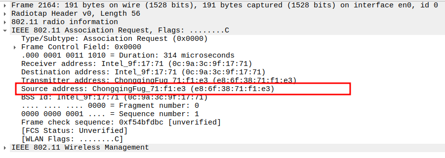 STA MAC address (e.g., e8:6f:38:71:f1:e3).