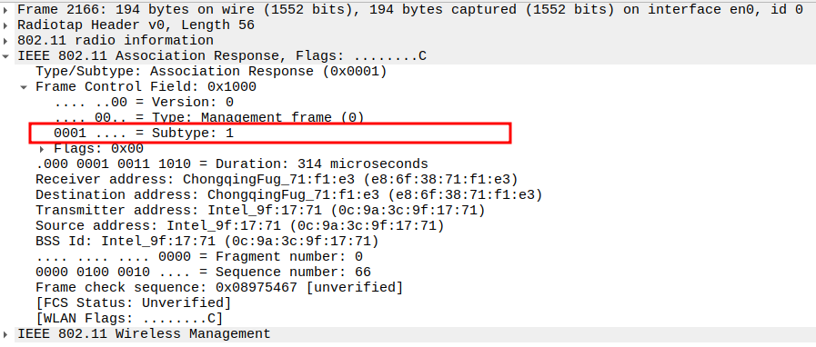 - Includes Reason Code (e.g., 0x0001: Unspecified reason,0x0004 → Disassociated due to inactivity,