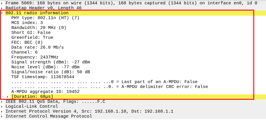 The ICMP Request is a unicast frame, so the AP replies with an ACK.