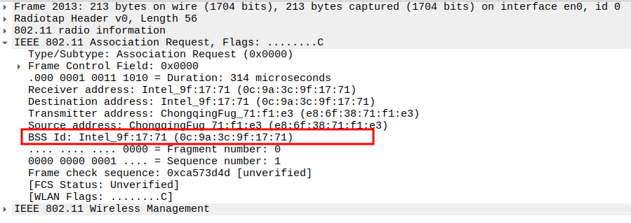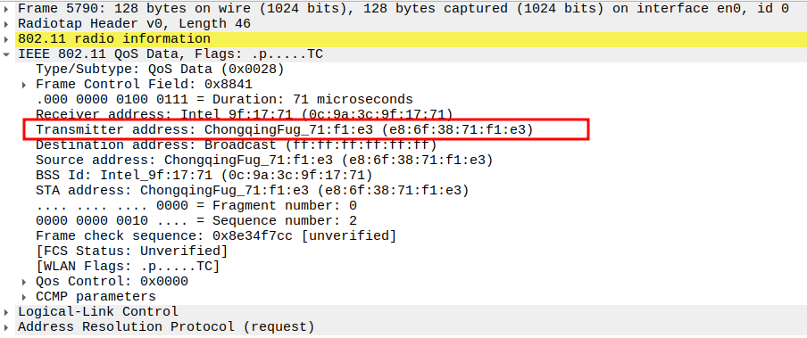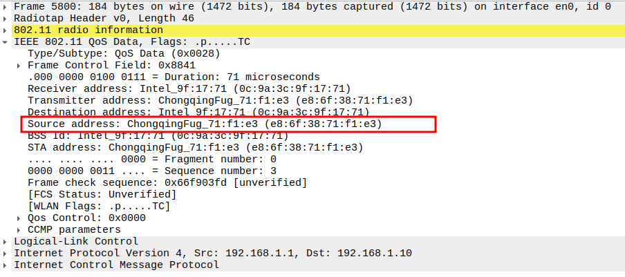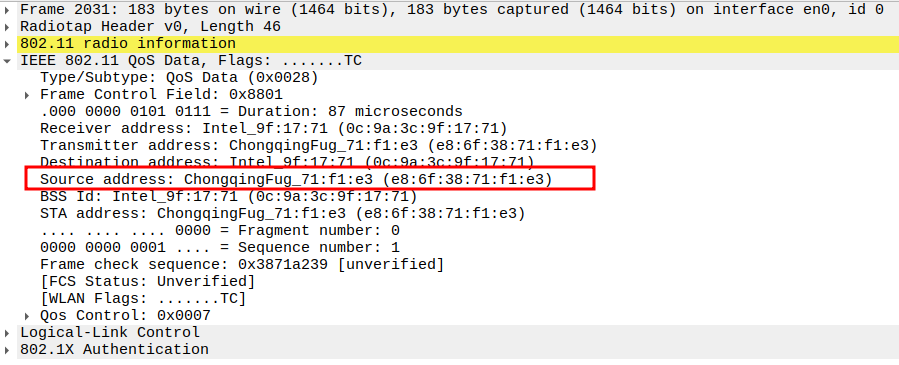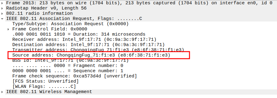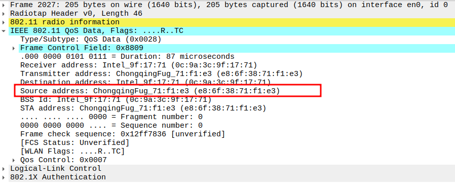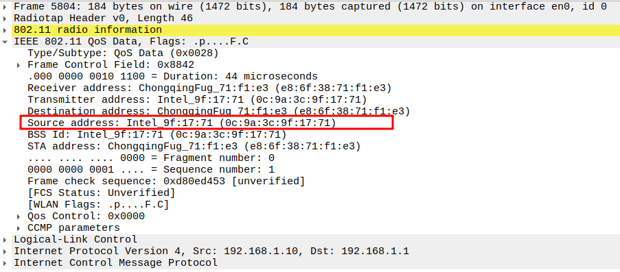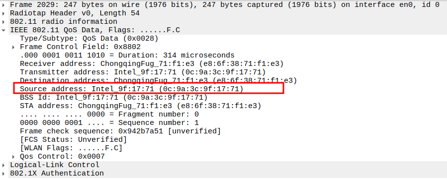STA MAC — confirms the intended recipient at the link layer.