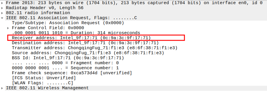Verify Receiver MAC Address
