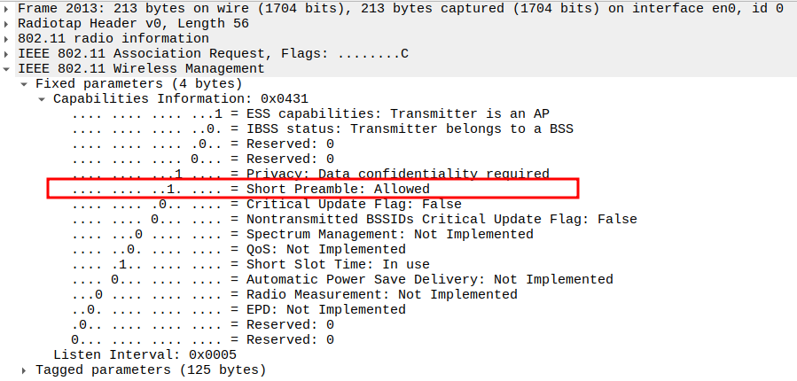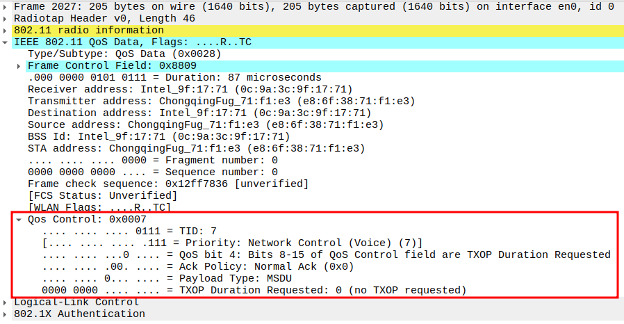 Subtype = 12 identifies the frame as Deauthentication.