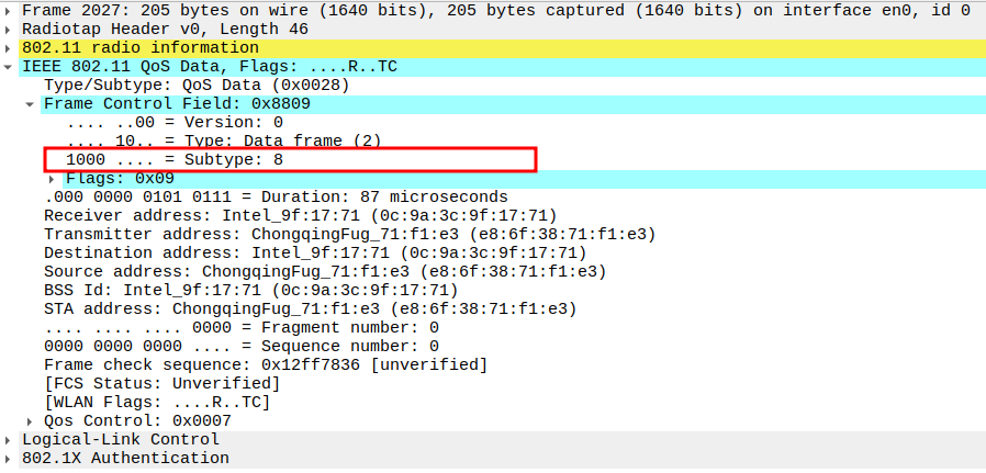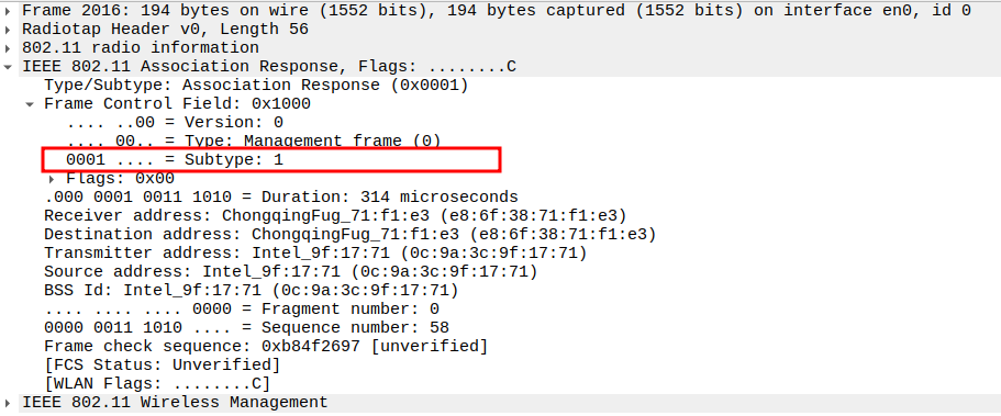 Verify Frame Subtype