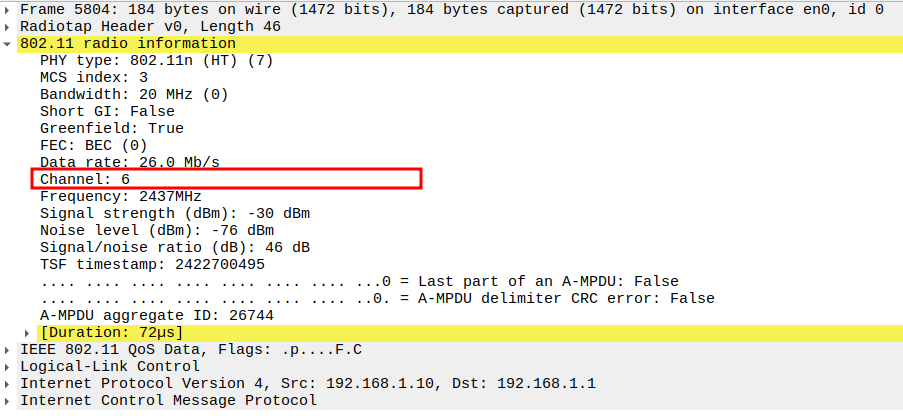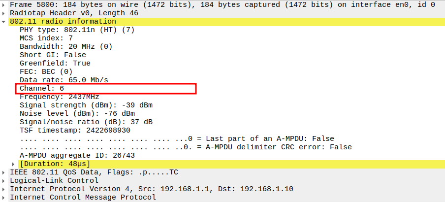 Channel used for transmission (e.g., Channel 6 / 2437 MHz).