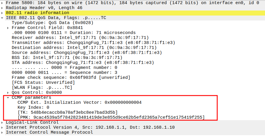 CCMP Ext. Initialization Vector (PN): ensures per-frame uniqueness
