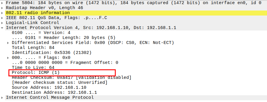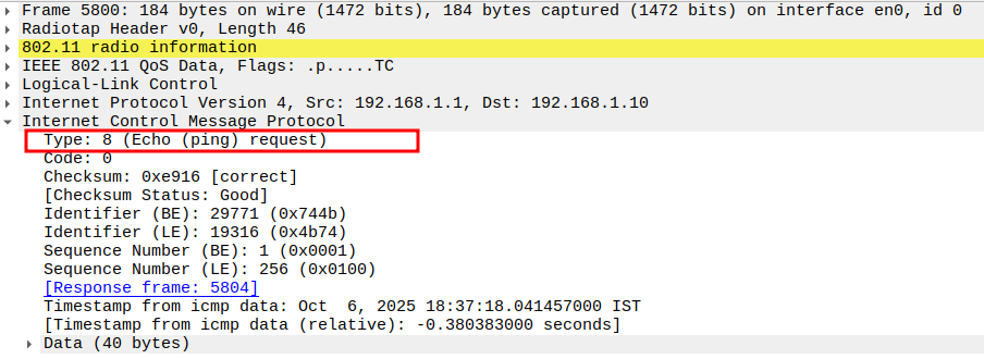 Check if STA is sending ICMP Echo (Ping) Request