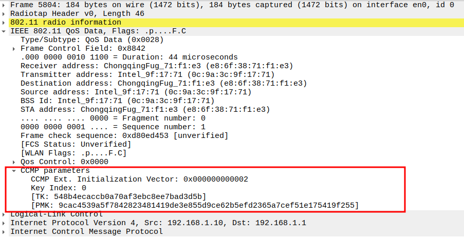 Pairwise Master Key (PMK): 9cac4539a5f7842823481419de3e855d9ce62b5efd2365a7cef51e175419f255