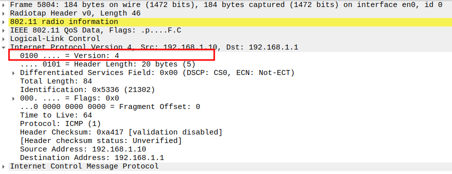 Version = 4 (IPv4).