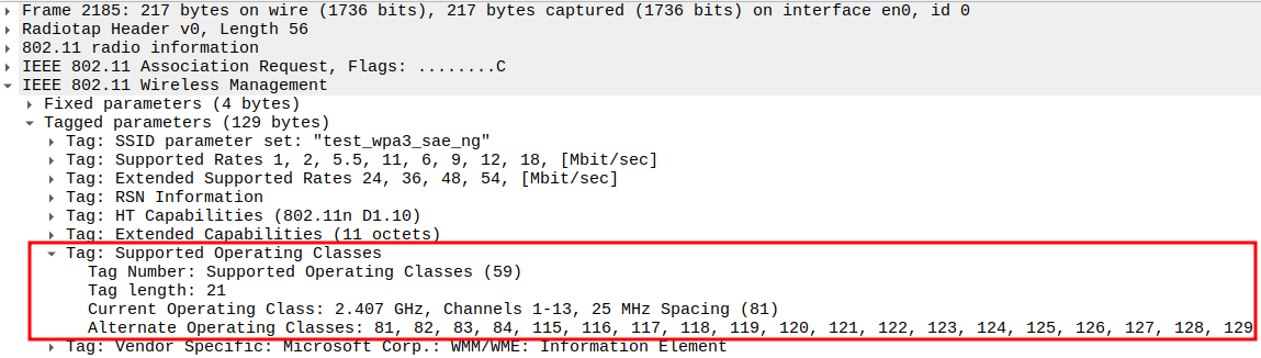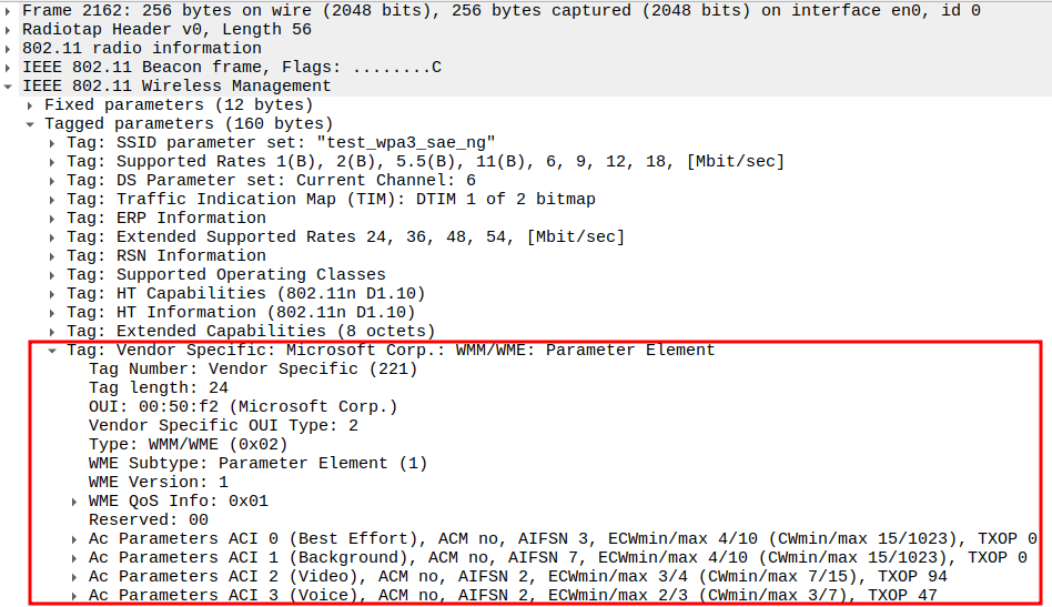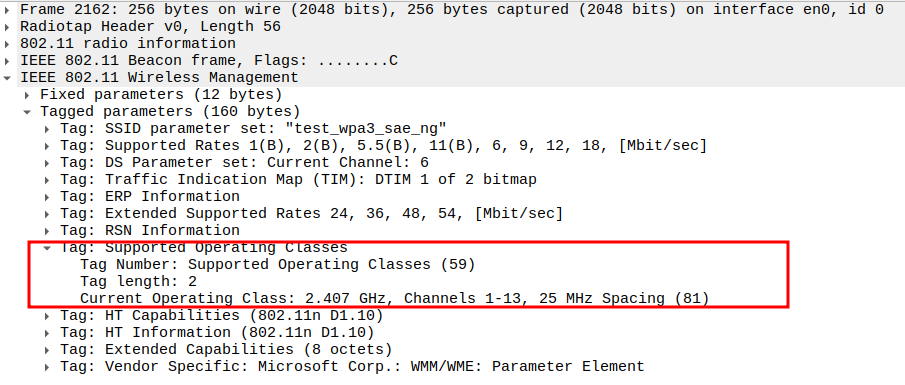 It is encapsulated inside an 802.11 Data frame and protected using WPA3 AES-256 CCMP
