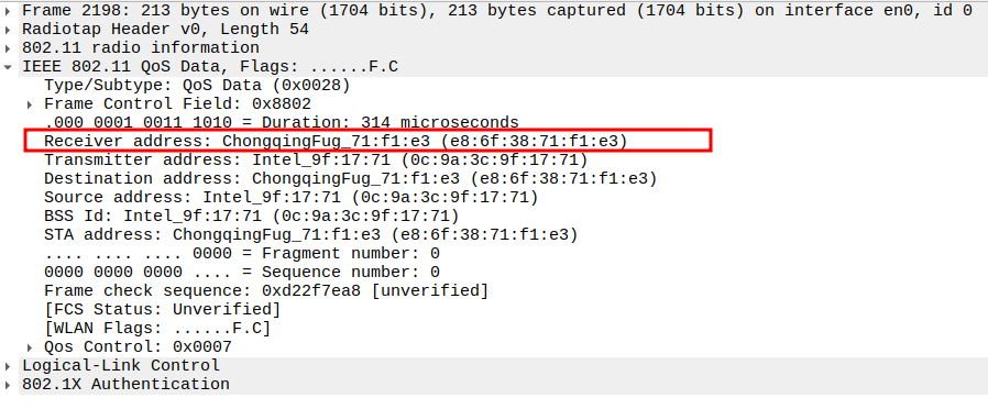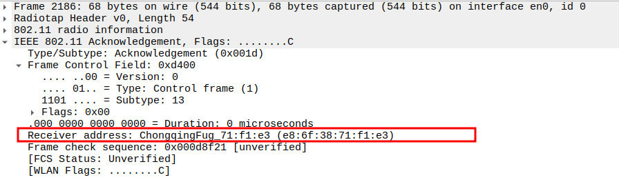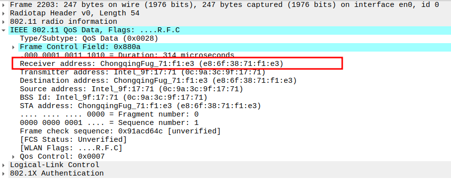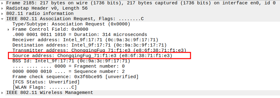 STA MAC address (e.g., e8:6f:38:71:f1:e3).