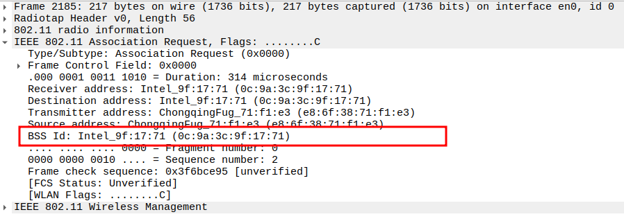 AP MAC address (e.g., 0c:9a:3c:9f:17:71).