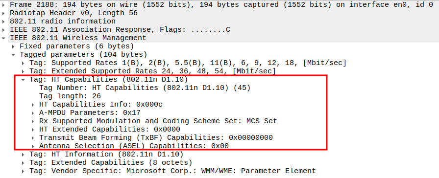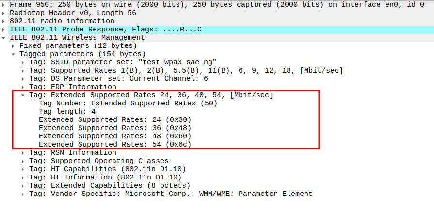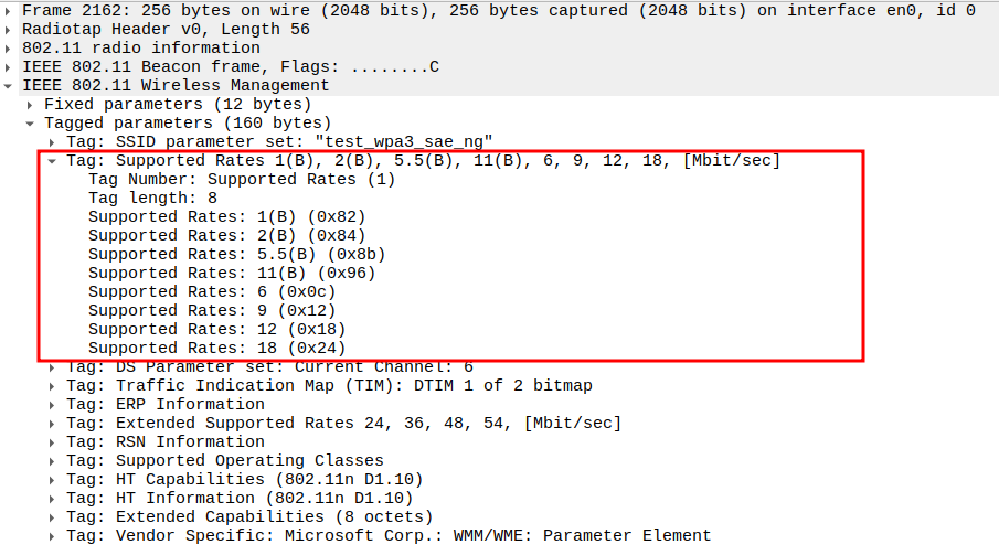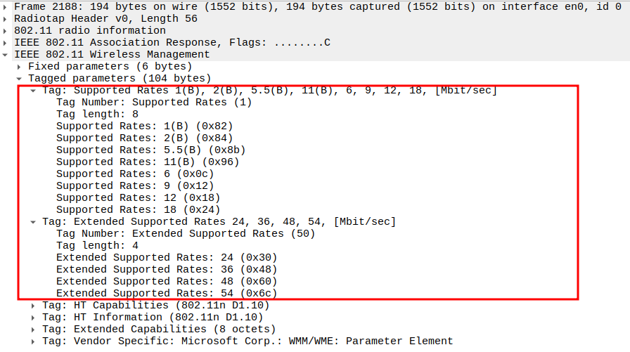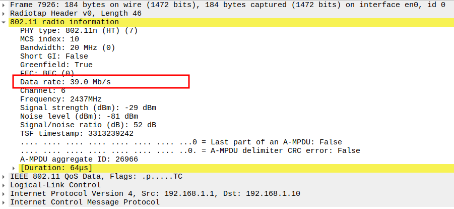 Data Rate indicates the PHY rate used by the STA (e.g., 24 Mbps or 36 Mbps).