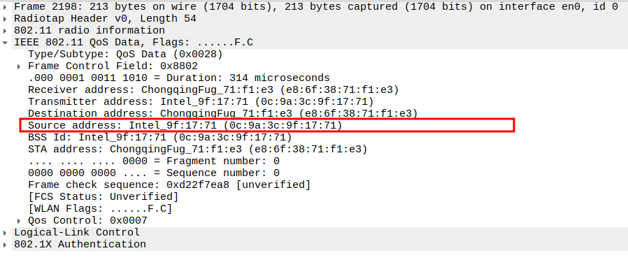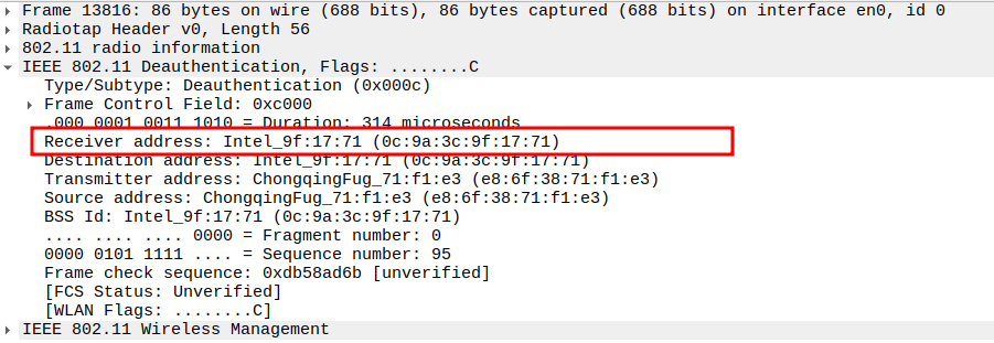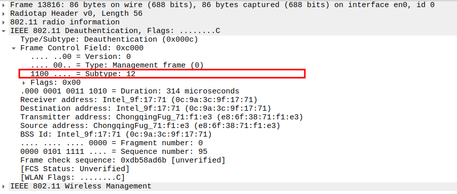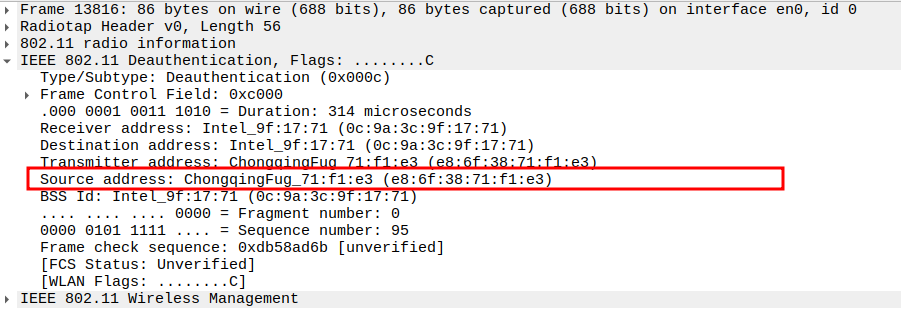 MAC address of the device sending the deauthentication frame (AP or STA).