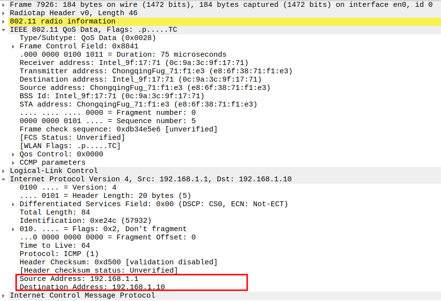Destination IP: AP IP (e.g., 192.168.1.10)
