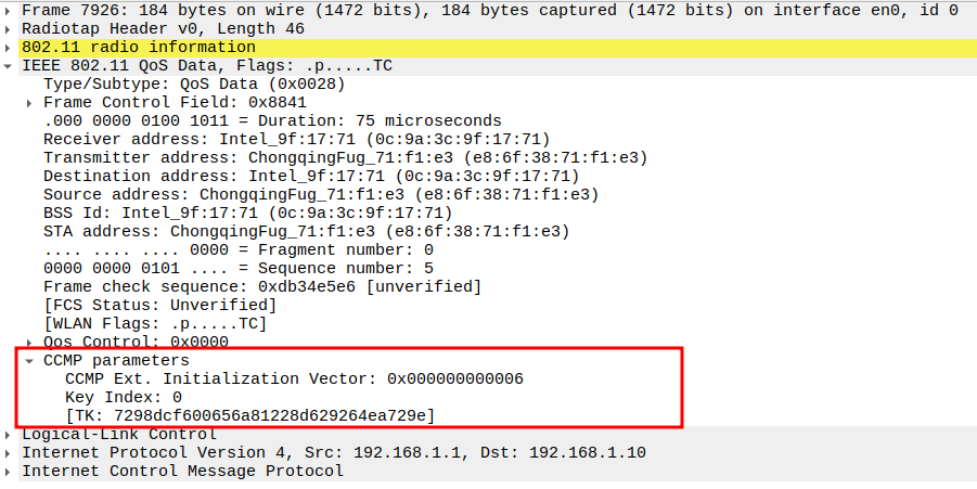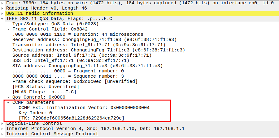 CCMP Ext. Initialization Vector (PN) for frame uniqueness