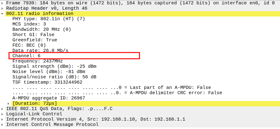 Channel used for transmission (e.g., Channel 6 / 2437 MHz).