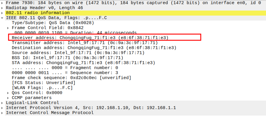 The ICMP Request is a unicast frame, so the AP replies with an ACK.