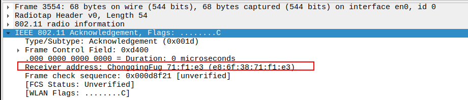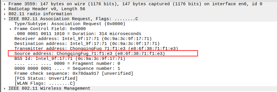 STA MAC address (e.g., e8:6f:38:71:f1:e3).
