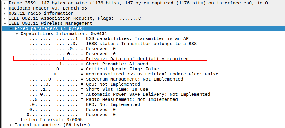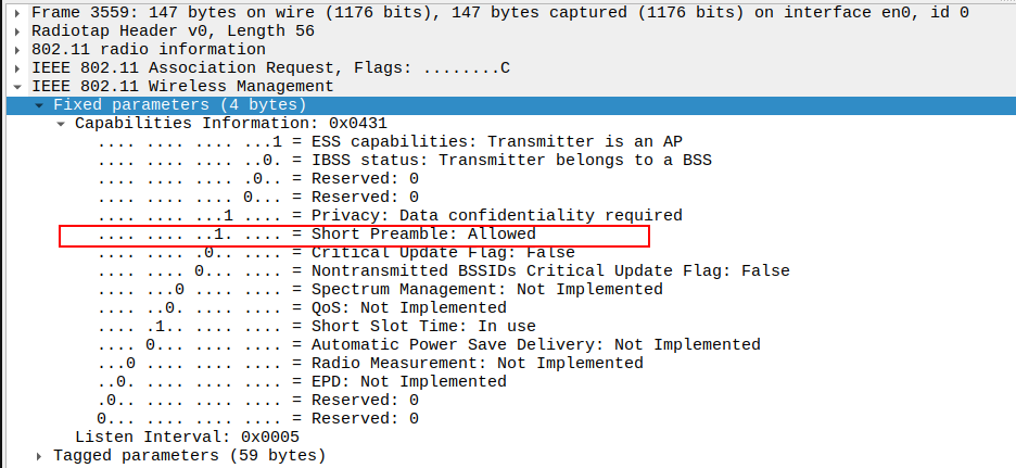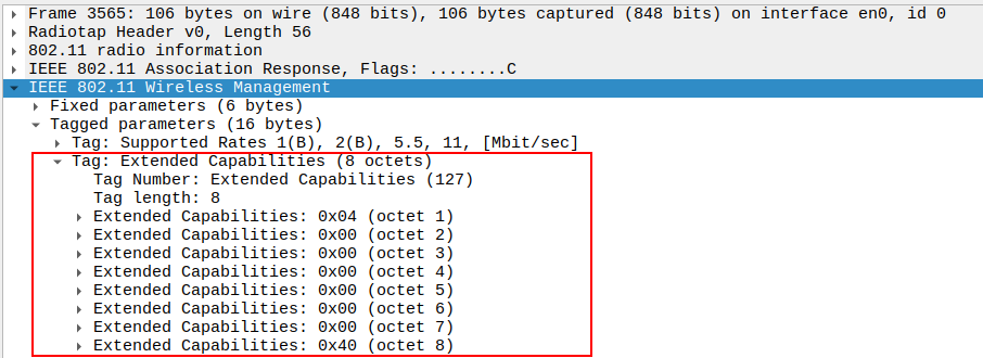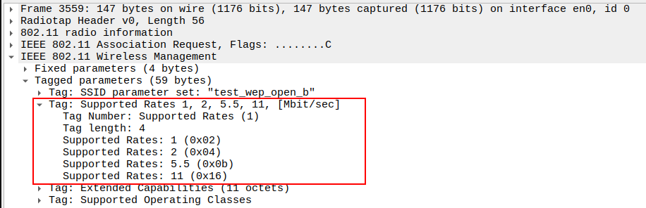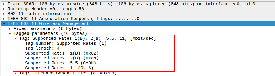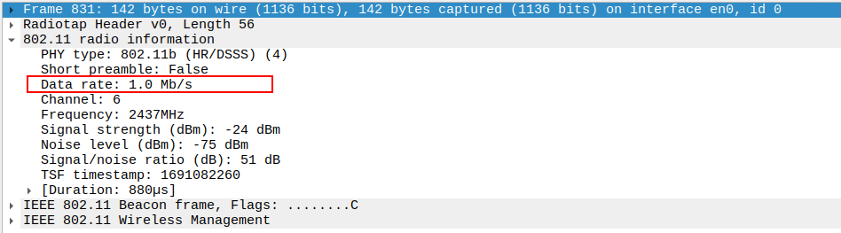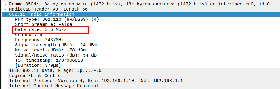 Data Rate indicates the PHY rate used by the AP (e.g., 11 Mbps).