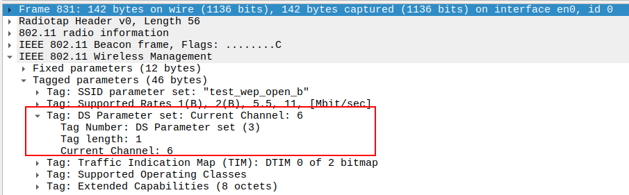 Channel used for transmission (e.g., Channel 6 / 2437 MHz).