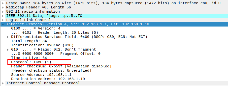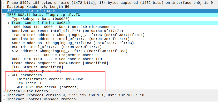 Encrypted CRC32 checksum ensures the integrity of the ICMP Request.