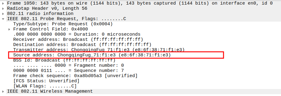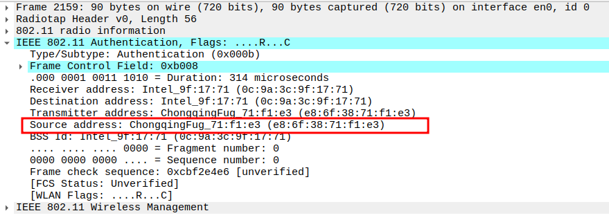 STA MAC address (e.g., e8:6f:38:71:f1:e3).