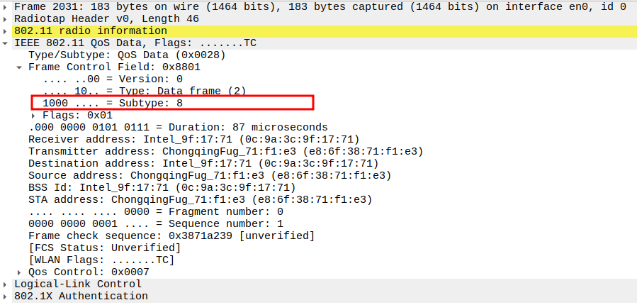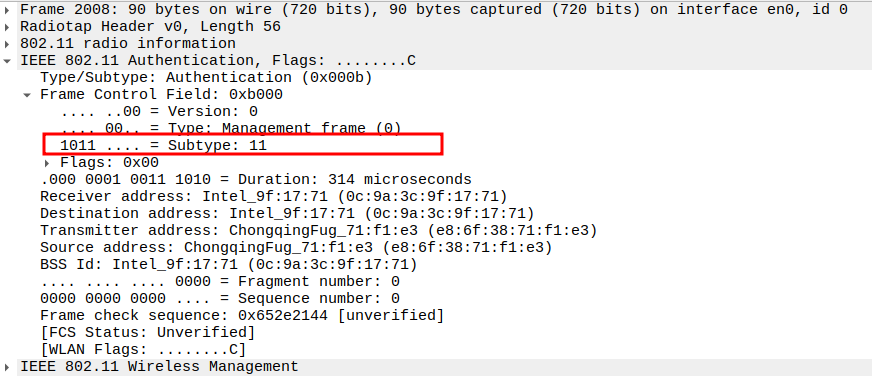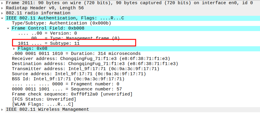 Verify Frame Subtype