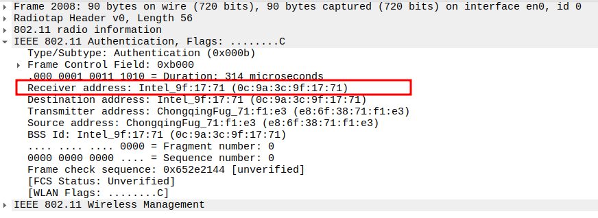 Verify Receiver MAC Address