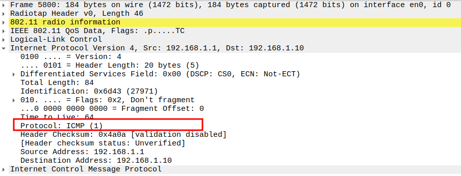 Check if STA is sending ICMP Echo (Ping) Request