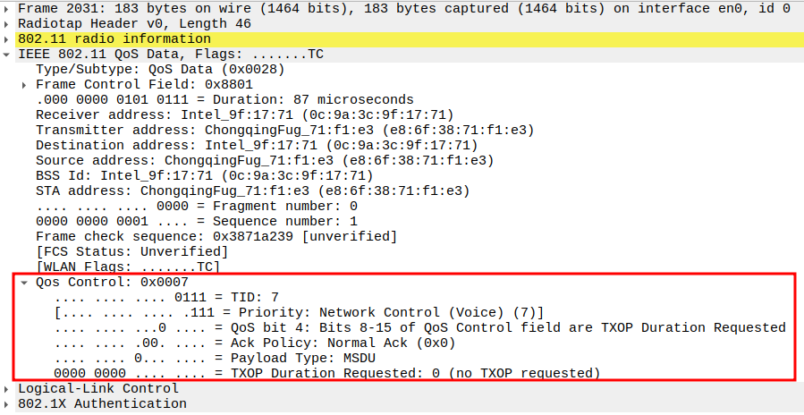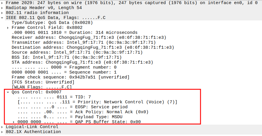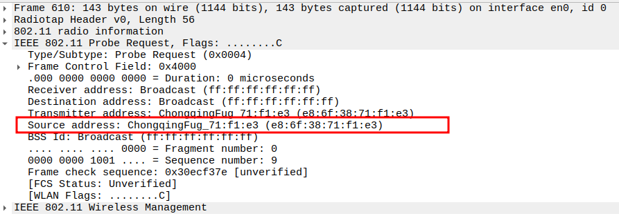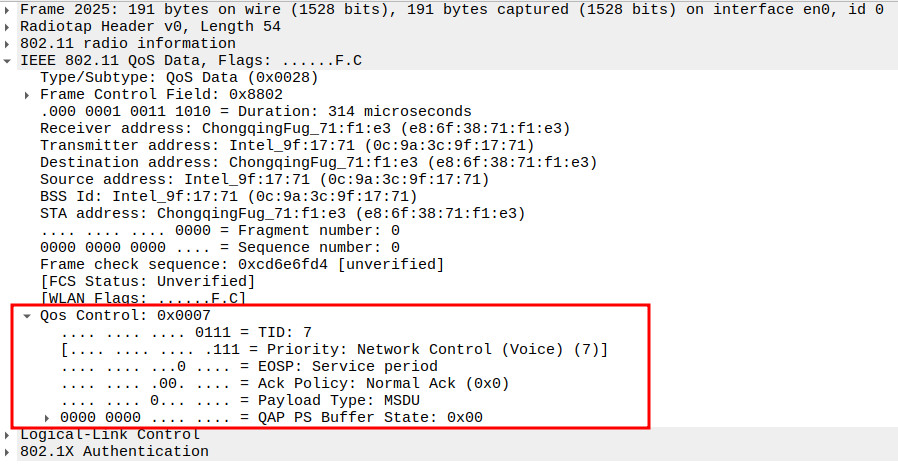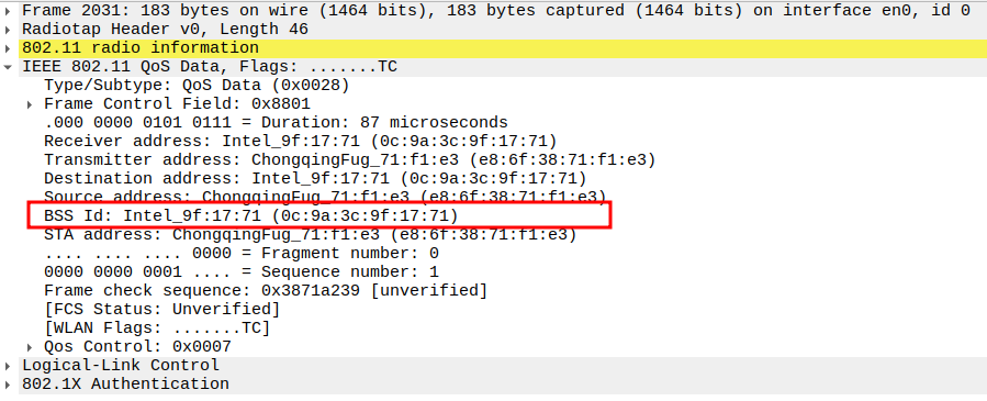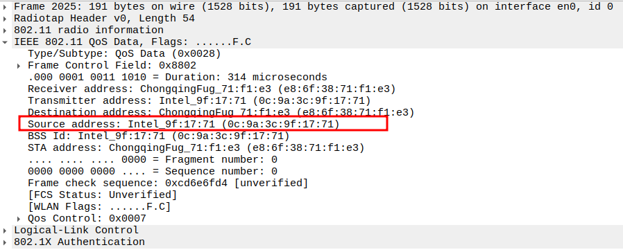 STA MAC — confirms the intended recipient at the link layer.