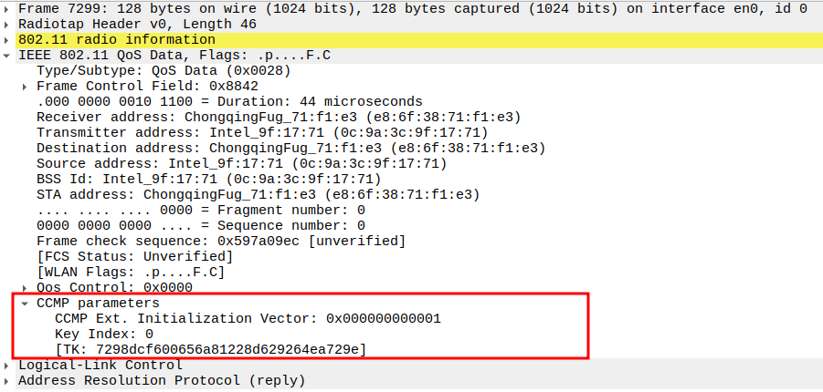 CCMP Ext. Initialization Vector ensures per-frame uniqueness.