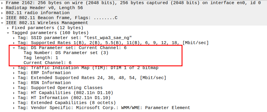 Channel used for transmission (e.g., Channel 6 / 2437 MHz).