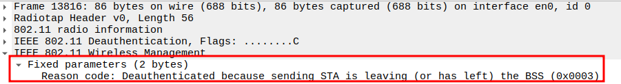 Deauthentication is a management frame sent by either the AP or STA to terminate an existing connection.