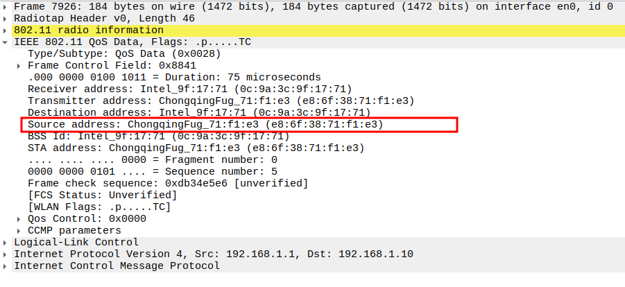MAC address of the device sending the deauthentication frame (AP or STA).