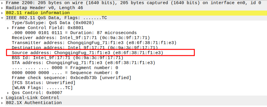 STA MAC address (e.g., e8:6f:38:71:f1:e3).