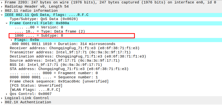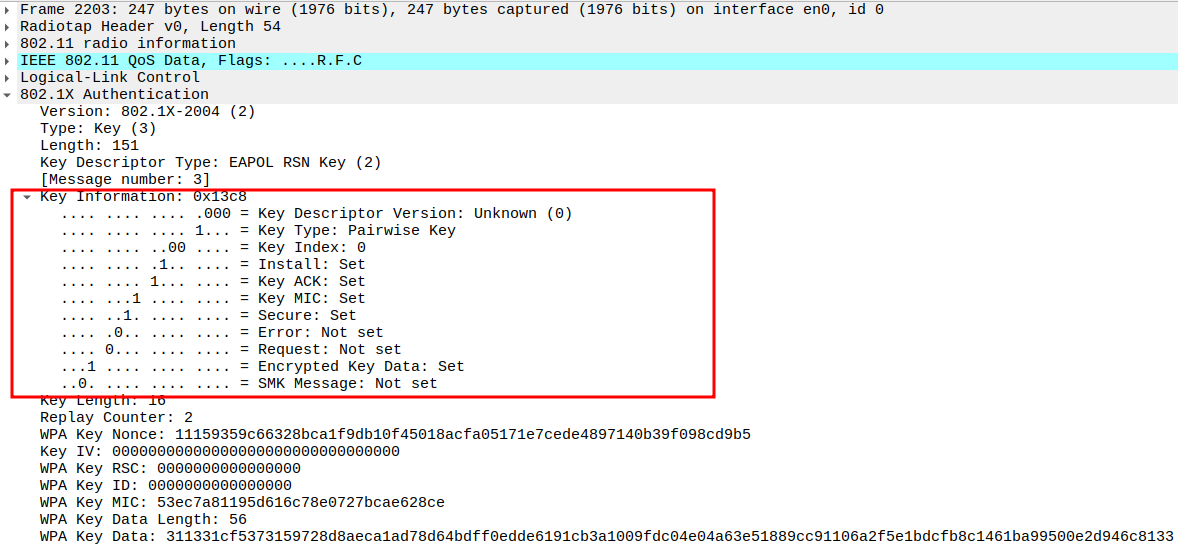 It is encapsulated inside an 802.11 Data frame and protected using WPA3 AES-256 CCMP